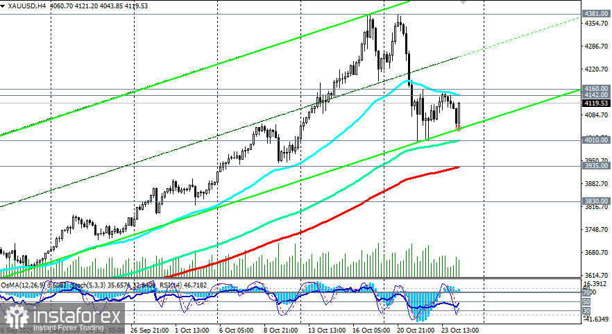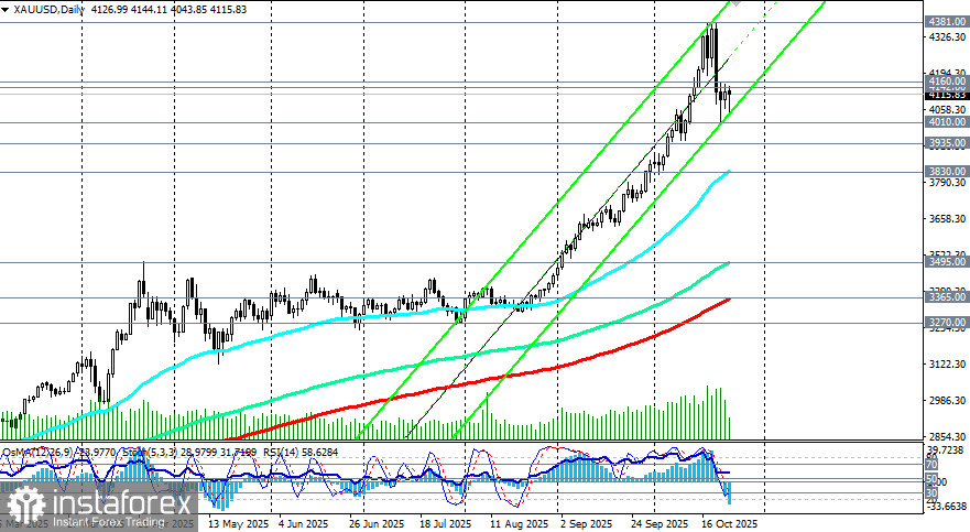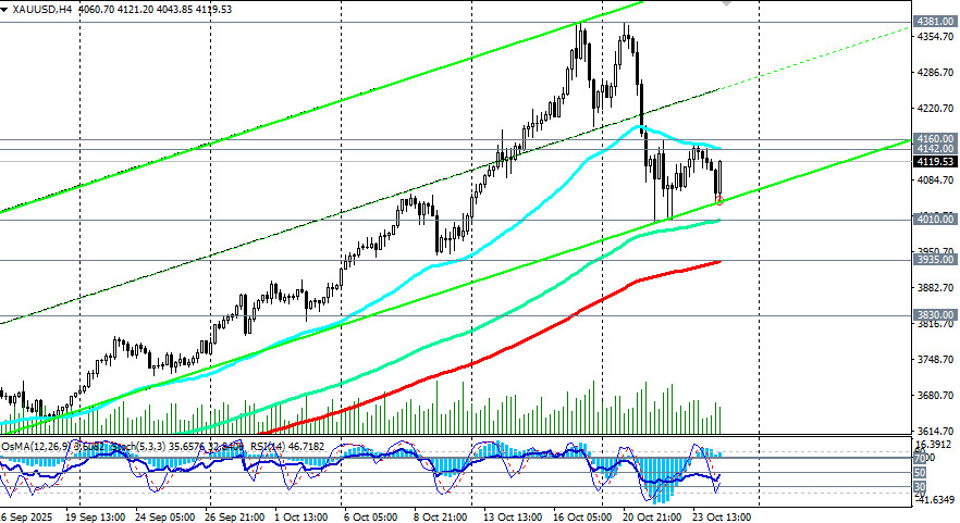 В альтернативном сценарии и при возобновлении нисходящей коррекции возможна просадка к недавним локальным минимумам и к важному уровню поддержки 4010.00 (ЕМА144 на 4-часовом графике), от которого можно ждать отскок. Его пробой может спровоцировать еще некоторое снижение к уровню поддержки 3935.00 (ЕМА200 на 4-часовом графике), от которого, учитывая бычий тренд, можно строить новые длинные позиции.