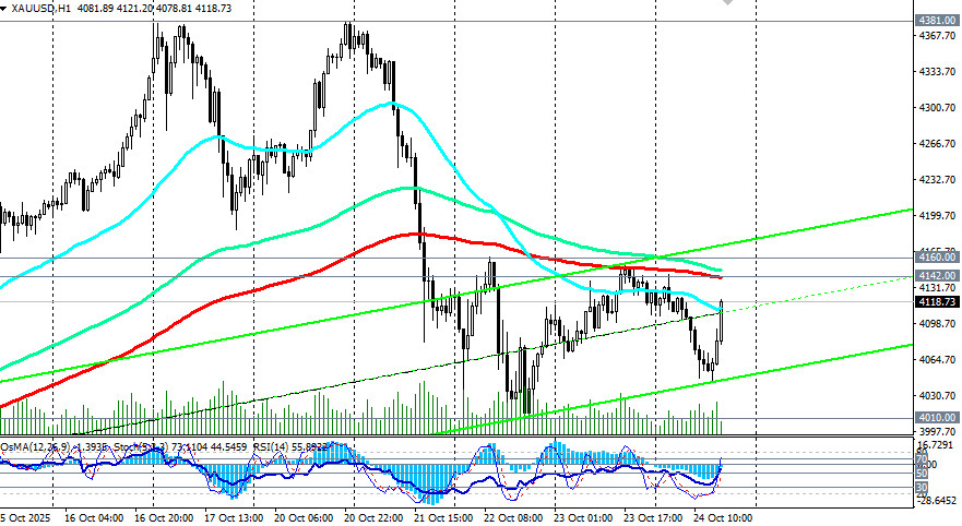 Факторы фундаментального характера, подкрепленные институциональным спросом и мягкой финансовой политикой, обеспечивают уверенную основу для дальнейшего повышения ценности золота в будущем. А в краткосрочной перспективе ближайшей целью роста станет важный уровень сопротивления 4142.00 (ЕМА200 на 1-часовом графике), преодолев который, цена продолжит свой рост в сторону недавних рекордов и отметки 4380.00.