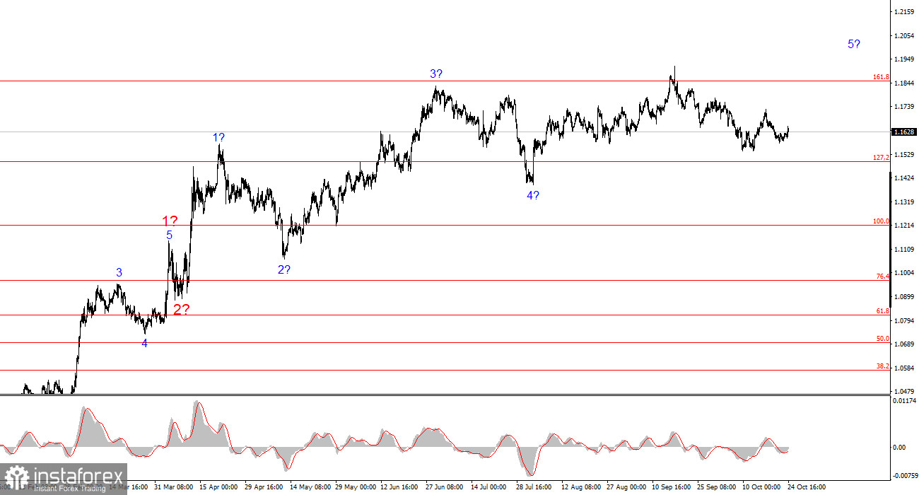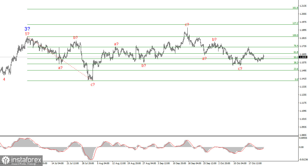 Все давно привыкли, что деловая активность в Евросоюзе гораздо чаще оказывается ниже ожиданий, чем наоборот. Однако на этот раз все четыре отчеты по Европе превысили ожидания рынка. Превысили ненамного, но все же превысили. Так индекс деловой активности в производственной сфере Германии оказался выше всего на 0,1 пункт, но в сфере услуг – на целых 2,2 пункта. Индекс деловой активности в производственной сфере Евросоюза оказался выше ожиданий на 0,5 пунктов, а в сфере услуг – на 1,5 пункта. Четыре отчета из четырех – позитивные для евро, но рынок и не думал повышать спрос на европейскую валюту. Построение сложных коррекционных структур продолжается, а рынок не реагирует на новости даже тогда, когда они есть.